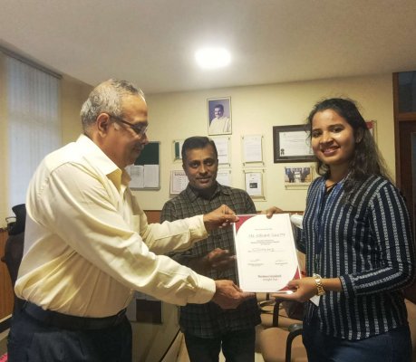 Ms. Krupa Shetty, a student of SDM Institute for Management Development (SDMIMD), Mysuru, has been selected as a Campus Reporter by the prestigious Business Standard newspaper. She received the Business Standard – Campus Reporter certificate from Dr. (Lt. Col.) S. N. Prasad, Director, SDMIMD, in the presence of Mr. Manikandan from Business Standard.