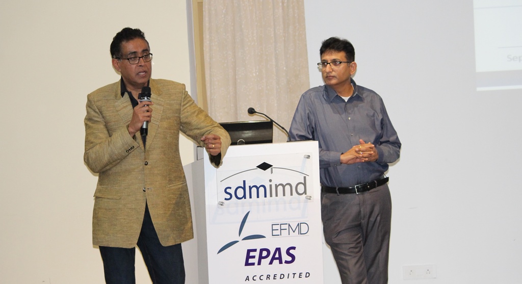 To generate such ideas and extract ideas from the students of SDMIMD a Curtain Raiser on Start Up Support Initiative was organised by Silicon Rd Initiative (P) Ltd. with the help of Swayam. The students of SDMIMD was briefed by Mr Sid Mukherjee, CEO of Silicone Rd and Mr Sanjay Srinivasmurthy, Director, Silver Sprit Global LLC. This opened huge door for the aspiring entrepreneurs of SDMIMD through the incubator that is being set up with our institution being one of the partners. The speakers gave an insight on how the incubator program, accelerator and the network that is linked to Silicon Rd (P) Ltd and the timeline of the application process. After 5 years since inception of E-Cell in SDMIMD, this is a huge step with the corporate that has taken place. DETAILED DOCUMENTAION BELOW Mr. Sid Mookerji graduated from BITS Pilani and went on to become an entrepreneur quite early in his career. He called himself as a recovering entrepreneur who had tasted failure and rejections initially. He started a company that had a large employee base and had made fourteen acquisitions. He said that SDMIMD, Mysore has given the right platform by inculcating entrepreneurship into its formal course and managing a committee to foster ideas and thoughts of its students. He highlighted that being an entrepreneur will be a hard journey with tough challenges. In this background he gave statistics of how many startups stand the test of time and thrive in this fiercely competitive world. Around 3% of enterprises started make it till five years, he added. Mr. Mookerji said incompetence and lack of management skills are the two main reasons for an enterprise to fail.